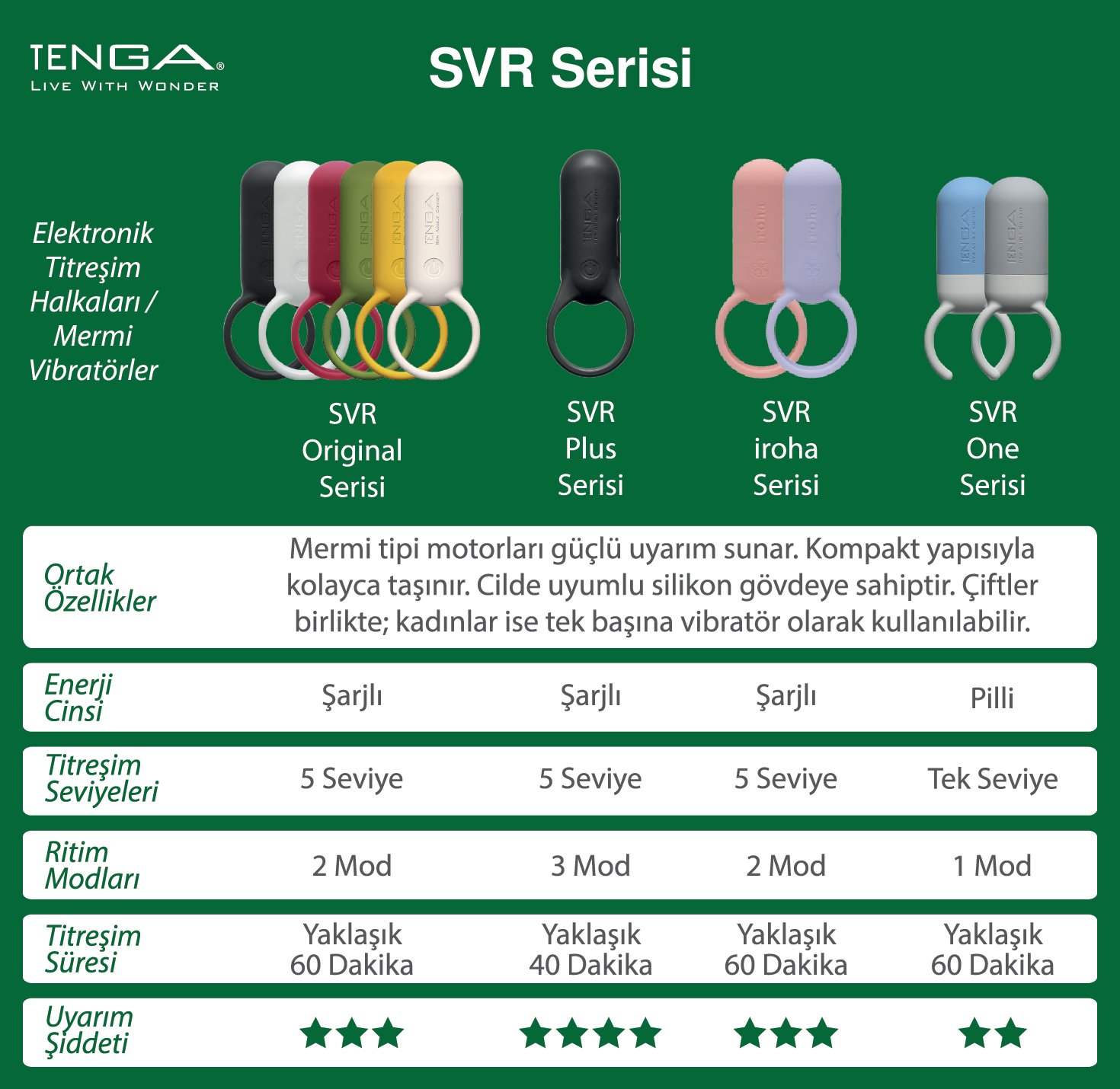 SVR, silikon bir halkası olan ve çiftlerin beraber geçirdikleri özel anlarda kullanmaları için tasarlanmış çok kuvvetli bir titreşim halkası ve vibratördür. Silikon halka kısmı erkeğe takılabilecek şekilde esneyerek istenilen seviyeye yerleştirilir. Cinsel ilişki esnasında öncelikli olarak kadına uyarım sağlamak üzere geliştirilmiştir. İstenirse de erkeğe takılmadan elde tutularak bağımsız bir vibratör olarak kullanılabilir. Çiftlerin cinsel hayatlarını daha canlı ve zengin hale getirmeleri için kullanabilecekleri eğlenceli bir yetişkin oyuncağıdır. 18 yaş ve üzerindeki her kadın ve erkek kullanabilir. SVR, Japonya’da tasarlanır ve hem yumuşak dış yüzeyi hem de sessiz titreşim teknolojisi sayesinde diğer yetişkin oyuncaklarından ayrışır. Taşıması ve saklaması kolay, kullanımı pratik ve uzun sürelidir. Kadınlar, SVR modellerini klitoral vibratör olarak tek başlarına da kullanabilirler. SVR’nin boyutları ufak olmasına karşın titreşim motoru çok güçlüdür.